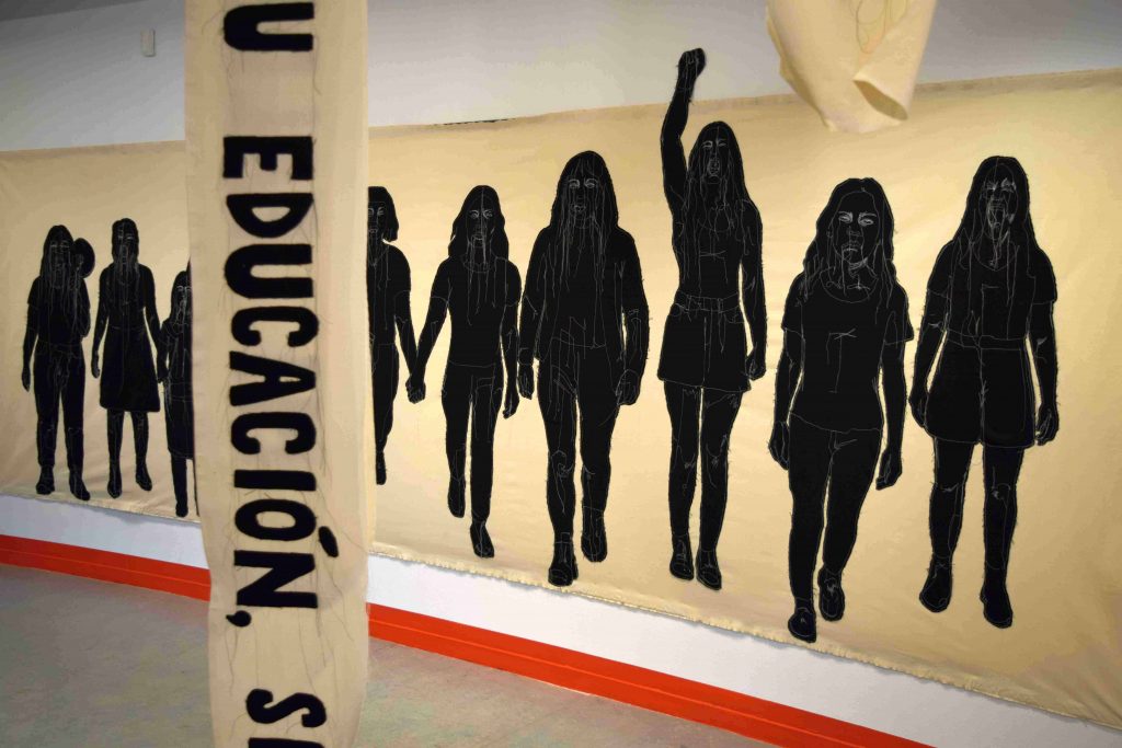 La videoperformance de Voluspa Jarpa (Rancagua, 1971), Ópera emancipadora (2019); las propuestas de Tania Candiani (Ciudad de México, 1971), La marcha (2025) y Frases de la protesta (2024); el trabajo de Abel Jaramillo (Badajoz, 1993), Bailes regionales (2016); Conspiraciones II (2017); la pieza de Teresa Margolles (Culiacán, 1963), Para que aprendan a respetar (2006-2024); o la videoperformance de Regina José Galindo (Guatemala, 1974), ¿Quién puede borrar las huellas? (2003), forman parte de la muestra en un contexto institucional de gran simbolismo[1] y bajo una curaduría coherente e imbricada que sentencia una idea: la esperanza debe residir.