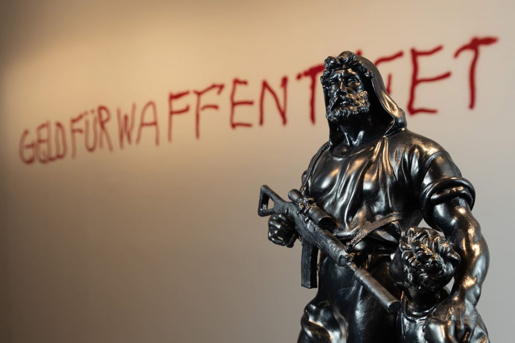 En un momento sociohistórico de violento belicismo, de miradas políticas intangibles, exilios forzados, hambre y muerte, el curador de la exhibición pretende, a partir de este homenaje a la estampa goyesca, poner el foco en la relectura de estos conflictos mediante una propuesta artística que propone una mirada fractal sobre la temática. Tal y como Bermúdez expone en el texto curatorial, el afán del artista zaragozano era “centrarse en las víctimas, algo bastante inusual en la iconografía bélica”, remitiendo a la crítica y pensadora que, con especial penetración, ha reflexionado sobre el dolor y su representación visual: Susan Sontag. En un conflicto bélico —extendido a lo largo y ancho del globo— el dolor y la injusticia ya no pueden quedar opacados (o no deberían): en un contexto contemporáneo donde el vencedor ya no es asumido como un héroe, y donde buena parte de la sociedad ya no entiende la guerra como en los tiempos imperialistas del siglo XVIII, los artistas de la muestra reflexionan sobre estas cuestiones proponiendo realidades alternativas.