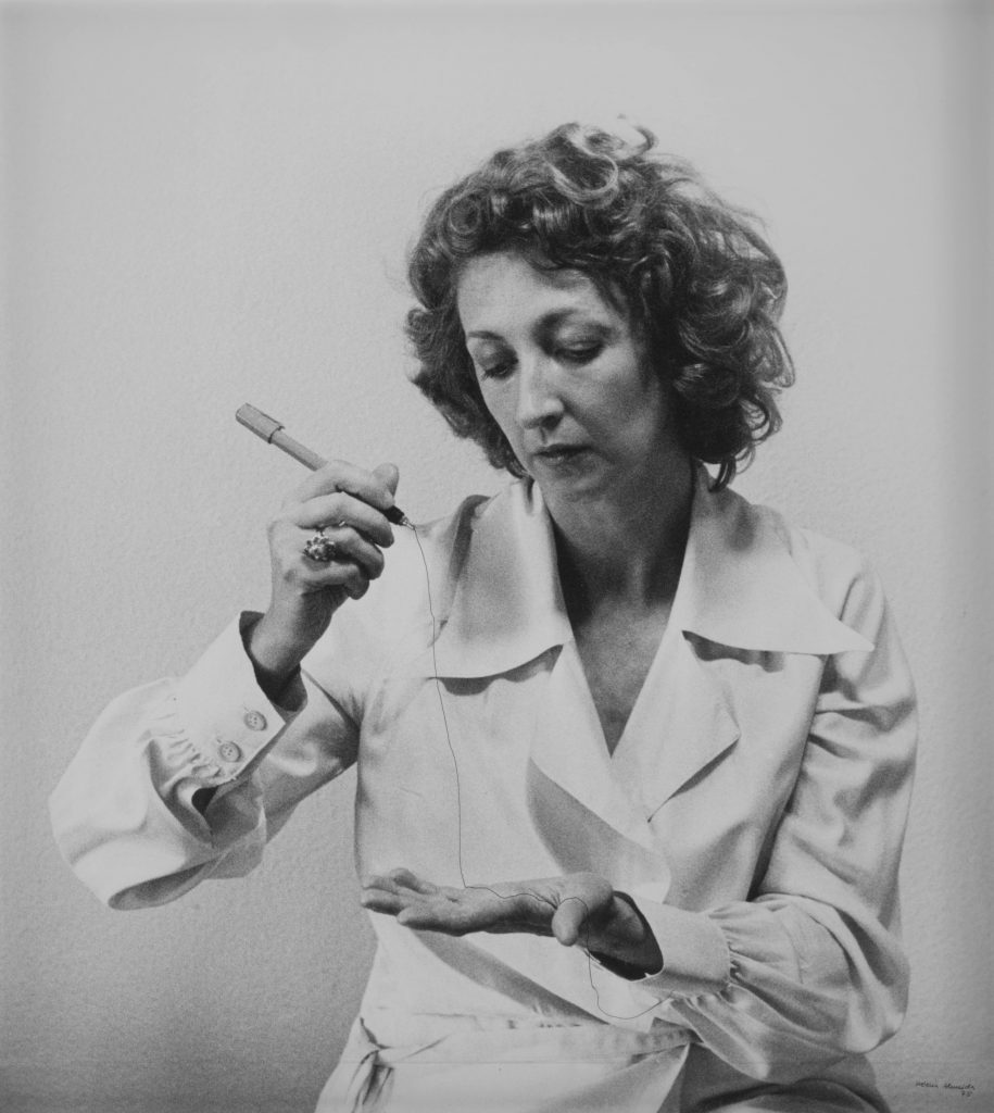 Helena Almeida es, ciertamente, una de las creadoras más relevantes del arte luso contemporáneo y, más específicamente, de la renovación que tuvo lugar en la década de los setenta. La investigación de la artista transita en una profunda experimentación con el medio material: desde las piezas con hilo de crin sobre papel, como vemos en obras como “Desenho Habitado” (1975), presentes en la muestra con un evidente nexo de unión resaltado en el texto curatorial: la línea como vínculo que excede al cuadro, a la materia. Un gesto abierto, consciente y obsesivo que amplía la superficie, convirtiendo el objeto (ella misma) en herramienta, materia y lenguaje.
