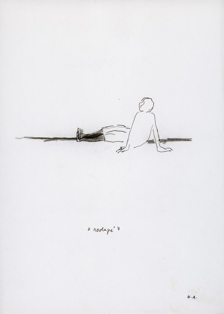 Helena Almeida, "Rodapé", 1999, grafito y tinta india sobre papel. 29,7 × 21 cm. Fotografía cortesía de Prat Nogueras Blanchard, Barcelona.
