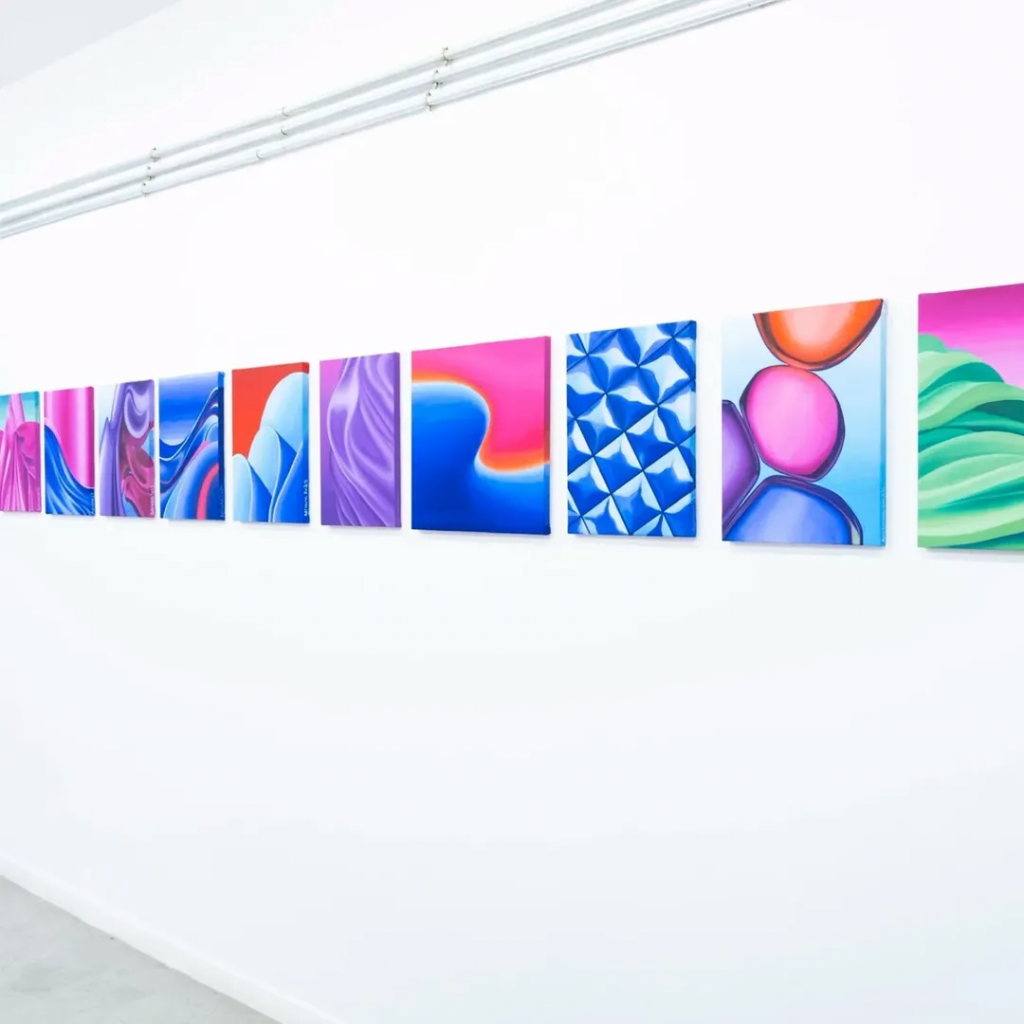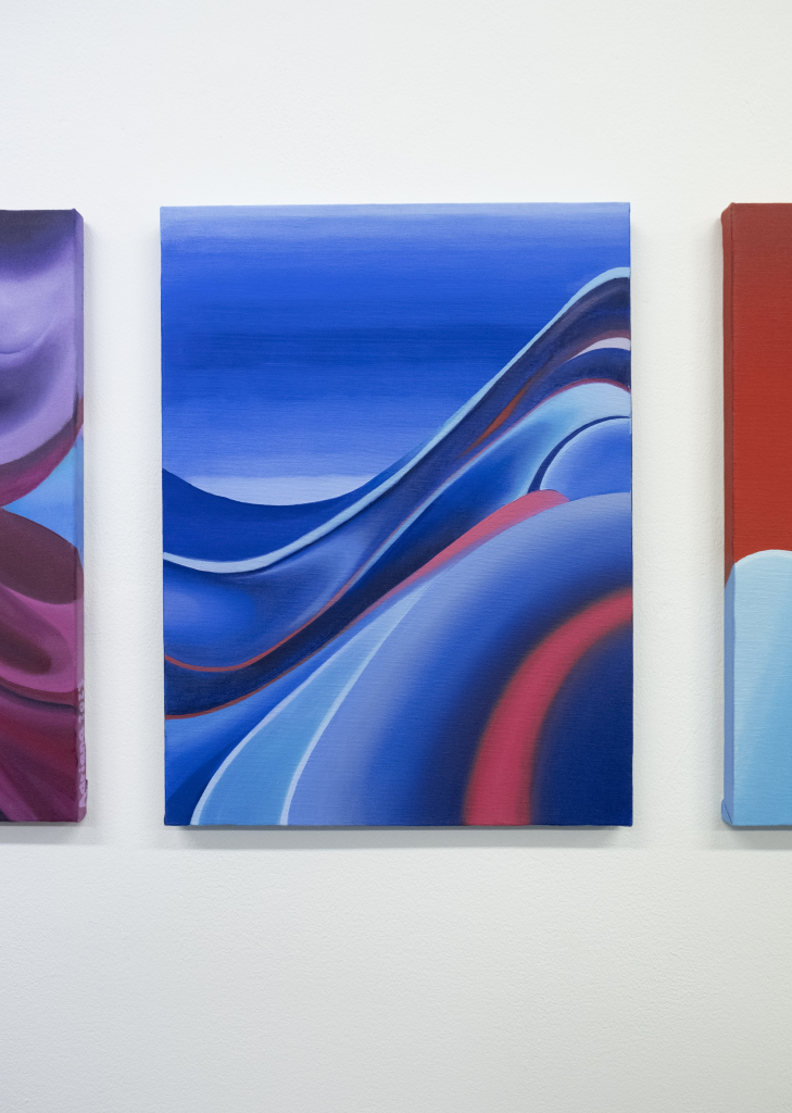Adriana Berges (Madrid, 1992) desarrolla una pintura situada entre la tradición paisajística y la estética digital, explorando cómo las pantallas y los archivos de Internet transforman nuestra percepción del color, la forma y la mirada. Su investigación doctoral sobre los paisajes virtuales y el “giro icónicoˮ complementa una trayectoria expositiva que se extiende de Sevilla a Oslo, Dubái o Miami, y que cuenta también con obra en diversas colecciones. Berges construye un corpus que indaga en la relación entre tecnología, memoria pictórica y experiencia visual contemporánea.