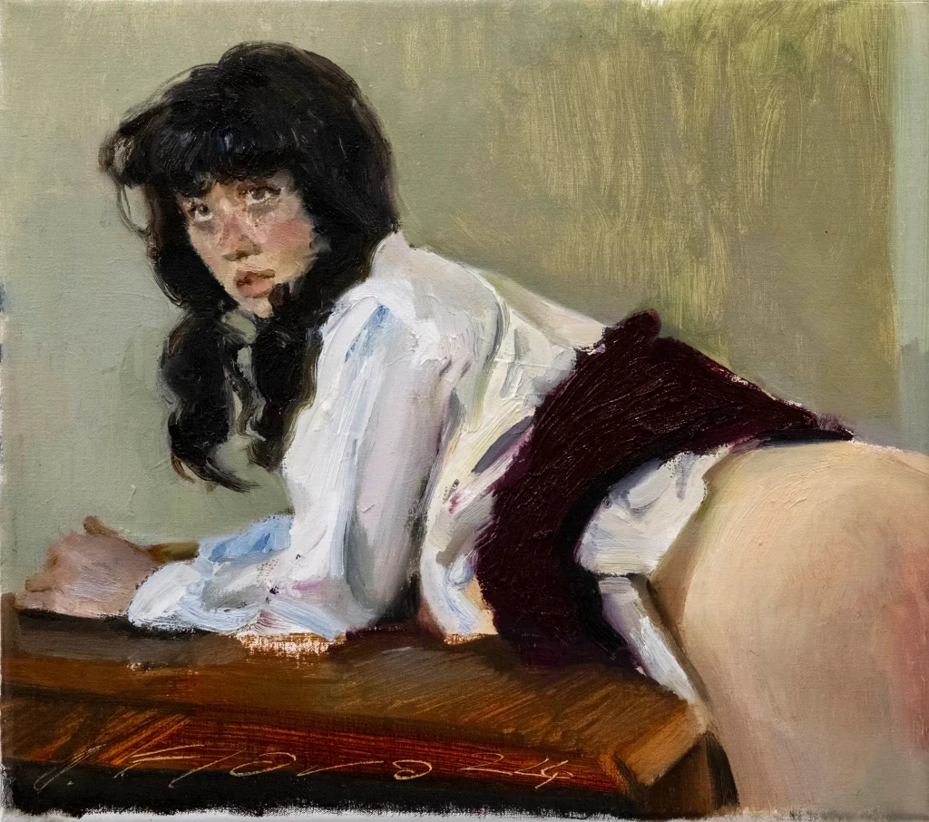 Una serie de lienzos crudos —que beben de la tradición corpórea de la intimidad, desde Egon Schiele y Lucian Freud hasta el magnánimo Francis Bacon— con capas contemporáneas y cinematográficas, que transgreden la belleza para dirigirse hacia un universo violento, donde la carne y el espíritu se fusionan en la sensualidad, dando espacio al cromatismo brillante, la velocidad y el secreto que sostienen a los personajes que protagonizan sus obras. Una mirada sobre una feminidad ciertamente hegemónica, situada en los cánones que Iván Floro (cuya trayectoria se inserta en la corriente pictórica formal del impresionismo) representa en esta exposición, que se podrá ver hasta el 20 de noviembre.