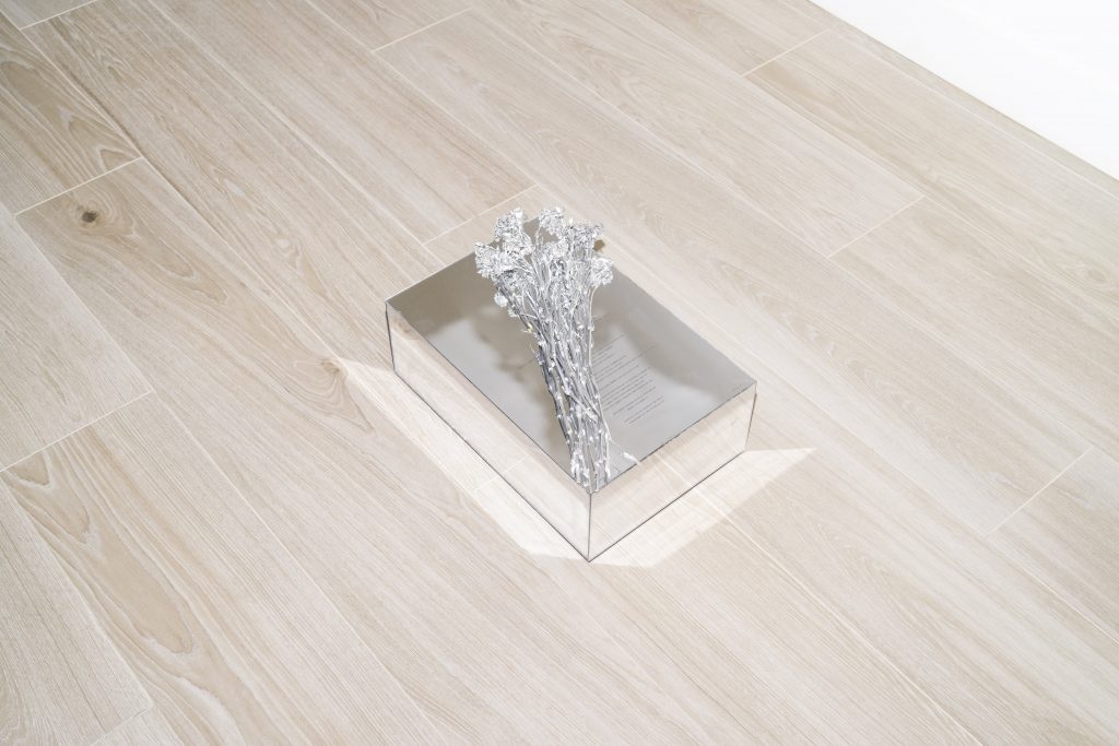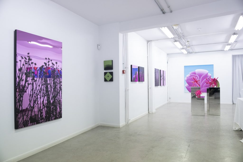 Vista de la exhibición "Las flores del paraíso" en Galería Arte a Ciegas. Fotografía de Marina Bobo, cortesía de la galería.