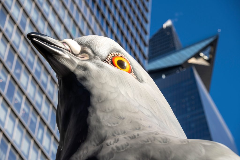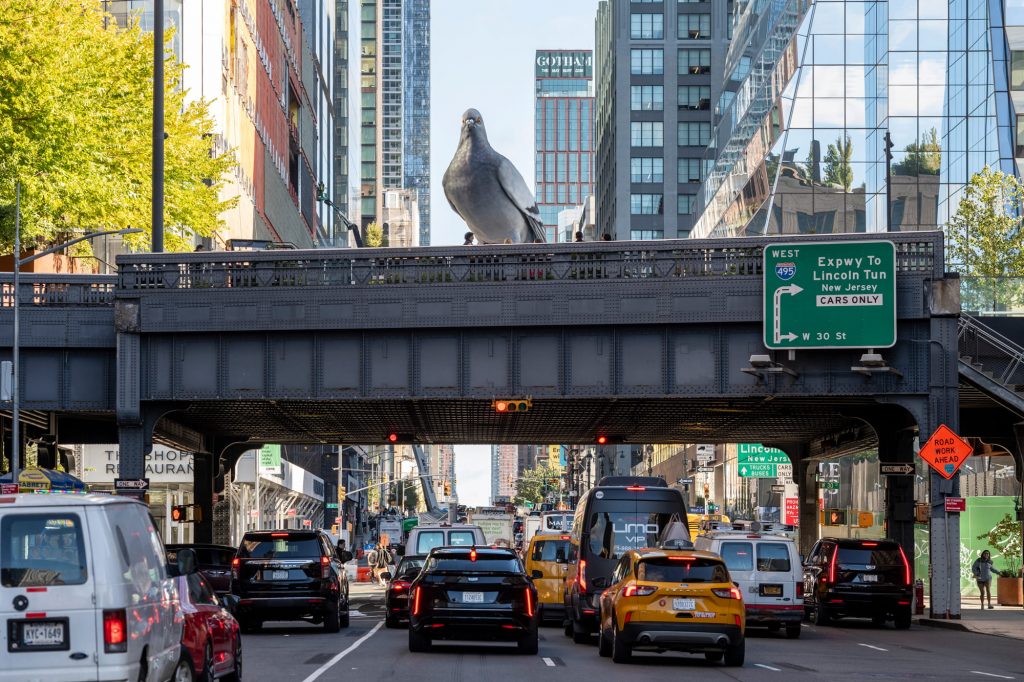 Una vez en el espacio público, la pieza comienza a transformarse a través de su relación con la ciudad. “La escultura pública se nos va siempre de las manos”, reconoce Argote. En Nueva York, la obra ha sido apropiada por los transeúntes de mil formas, hay incluso una petición para que no la retiren, ha generado dinámicas inesperadas e incluso ha convocado a comunidades dedicadas al cuidado de palomas y de otras especies urbanas. “Verla, vivirla y ver la reacción de la gente día a día, ha sido una gran alegría para mí. Se despierta en los rostros algo, la gente se alegra y divierte, y al tiempo, el mensaje es claro, la gente lo entiende muy bien”.